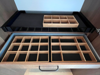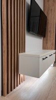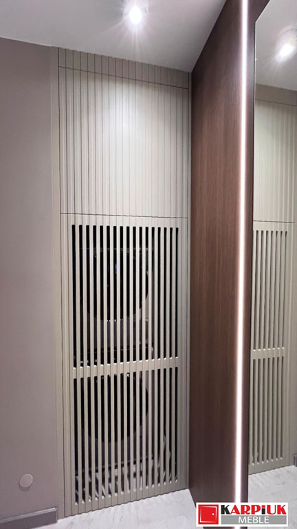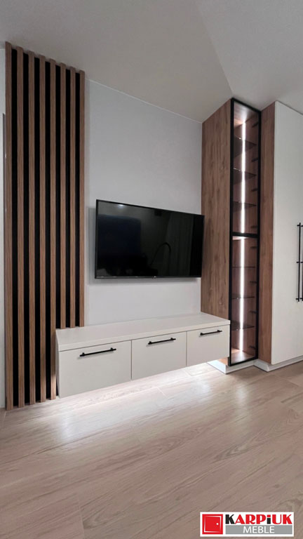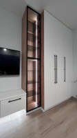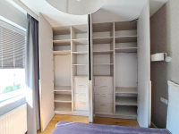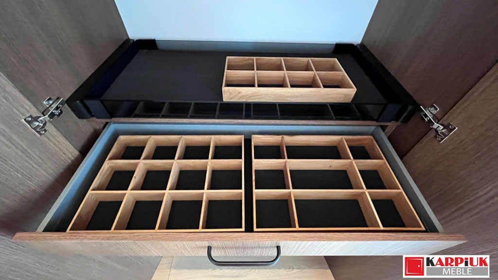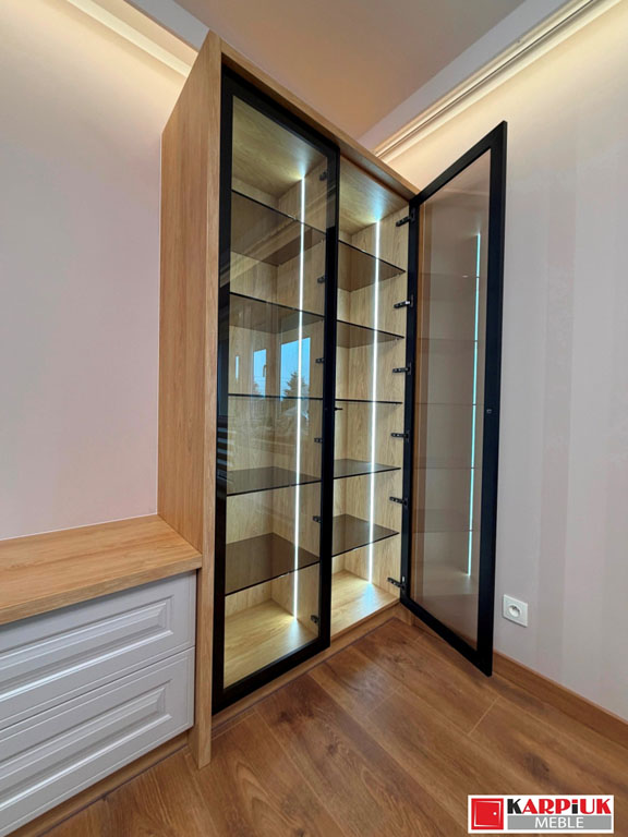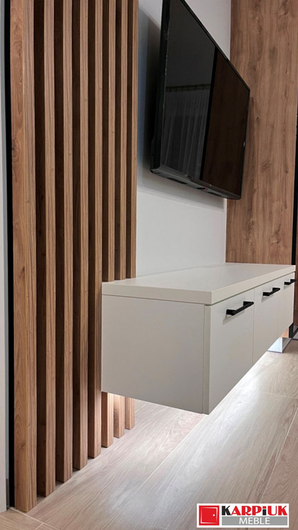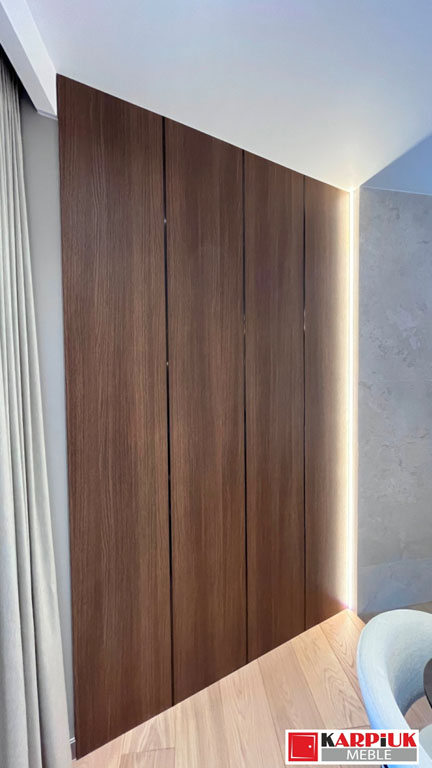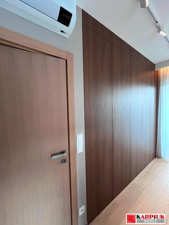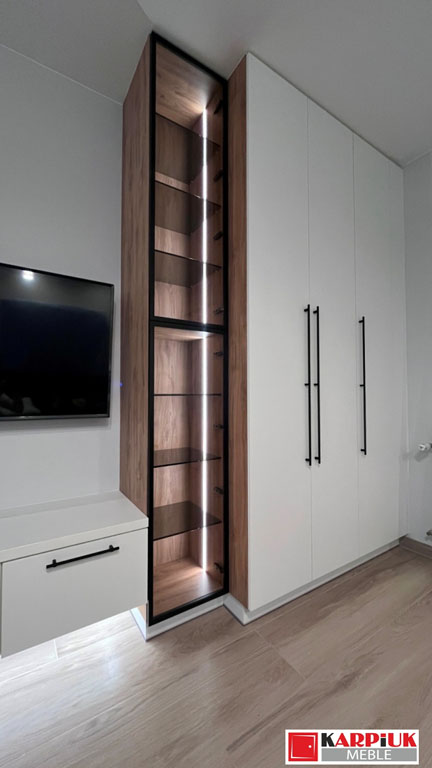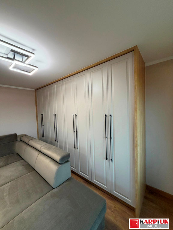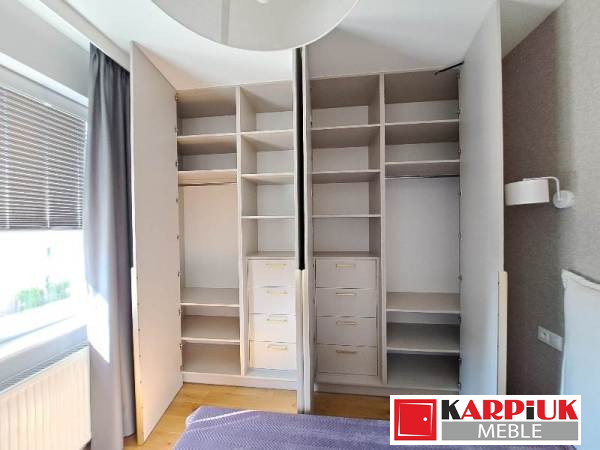 Walorem naszych szaf są przesuwne drzwi, lekko poruszające się po szynach, nie zajmujące dodatkowej przestrzeni przy otwieraniu. Stanowią one same w sobie element dekoracyjny i dostosowane są do pozostałych elementów wyposażenia przez co stanowią spójną całość.