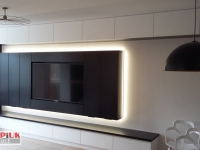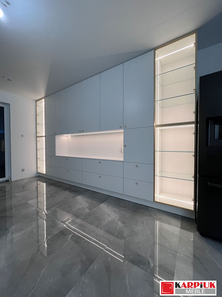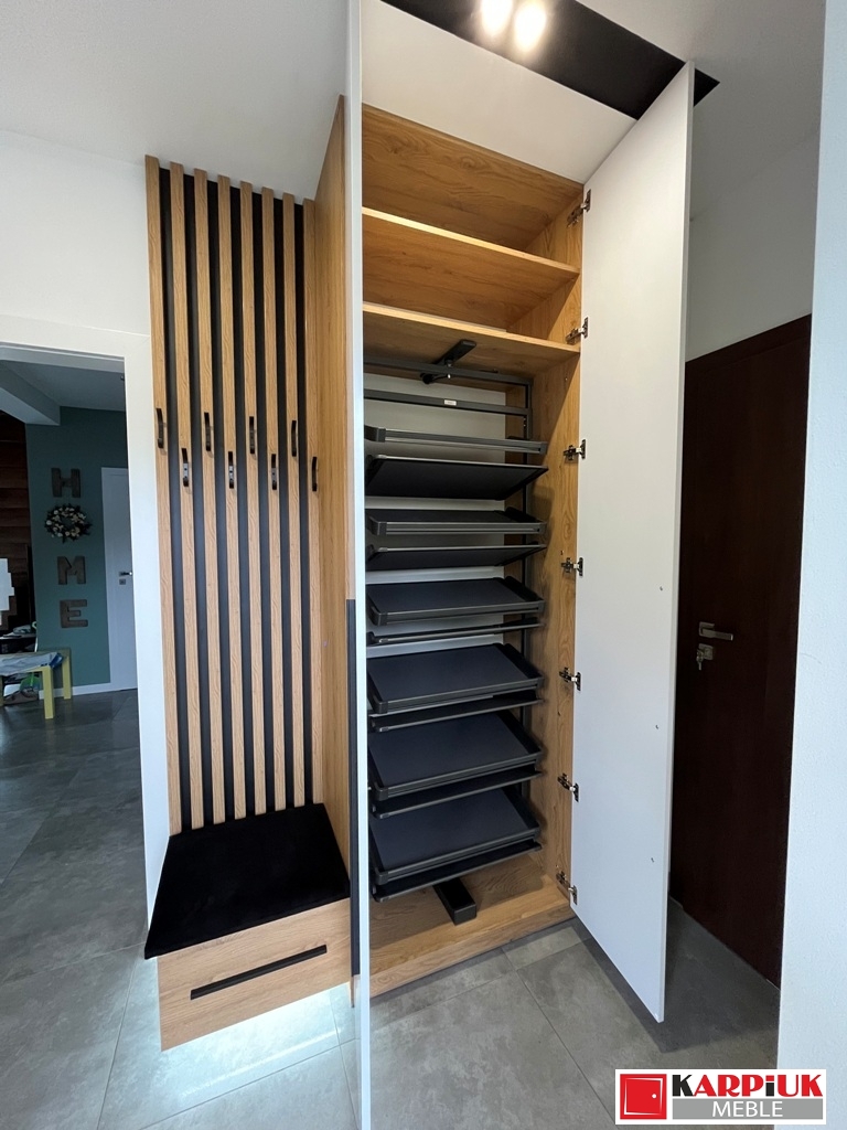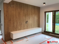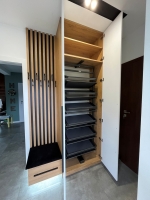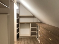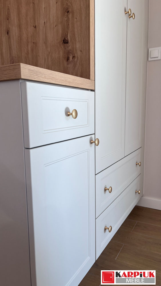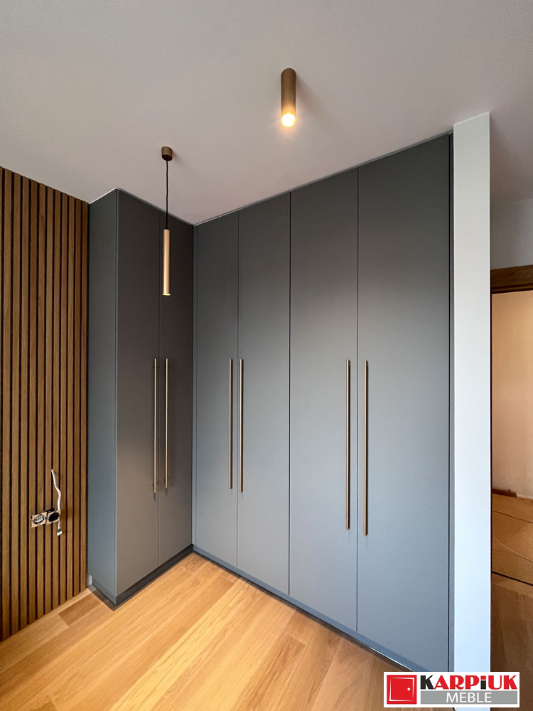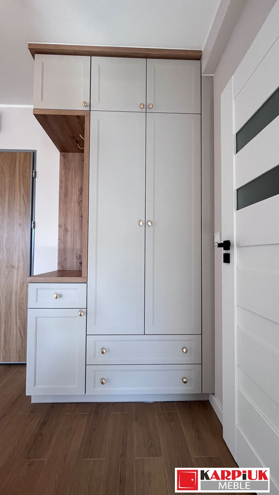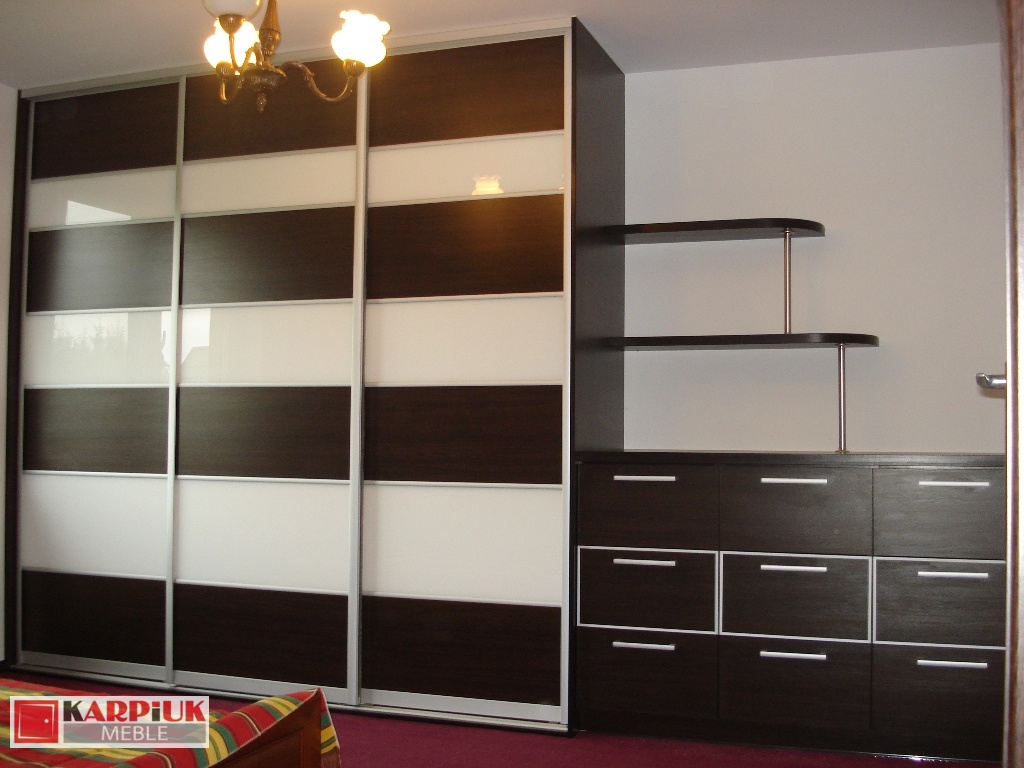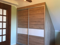 Walorem naszych szaf są przesuwne drzwi, lekko poruszające się po szynach, nie zajmujące dodatkowej przestrzeni przy otwieraniu. Stanowią one same w sobie element dekoracyjny i dostosowane są do pozostałych elementów wyposażenia przez co stanowią spójną całość.